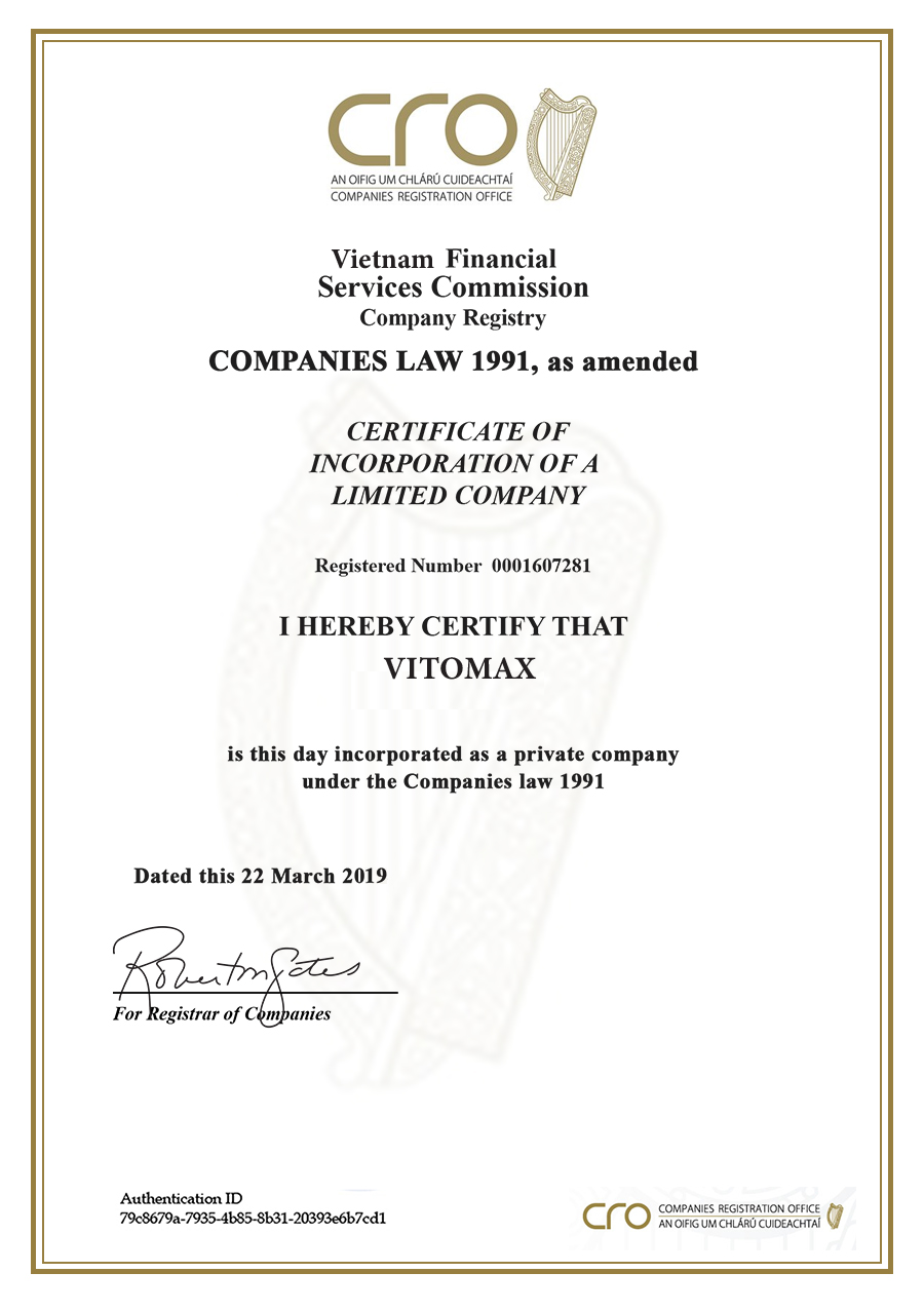 Vitomax has legal registration in Vietnam. This enables the company to have far more opportunities and rights compared to other non-legal financial companies. Our company's has balanced portfolio, which is profitable for our clients.